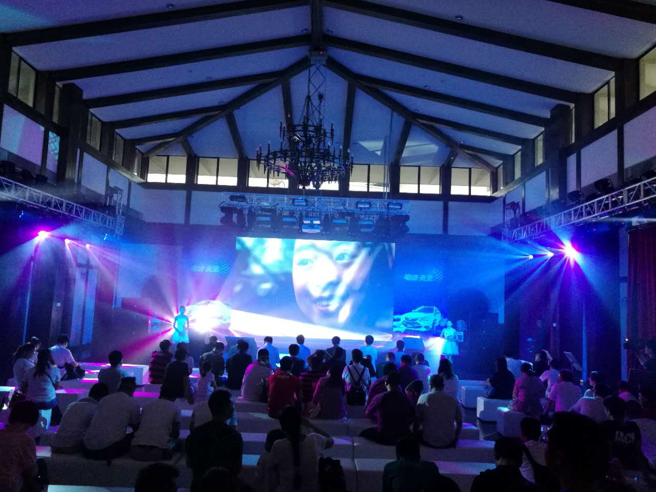 南沙游艇會(huì)場(chǎng)內(nèi)燈光音響布置,LED屏搭建。讓車友們更加了解比亞迪這兩款汽車的價(jià)值與性能。