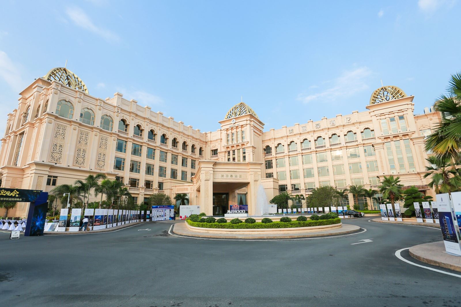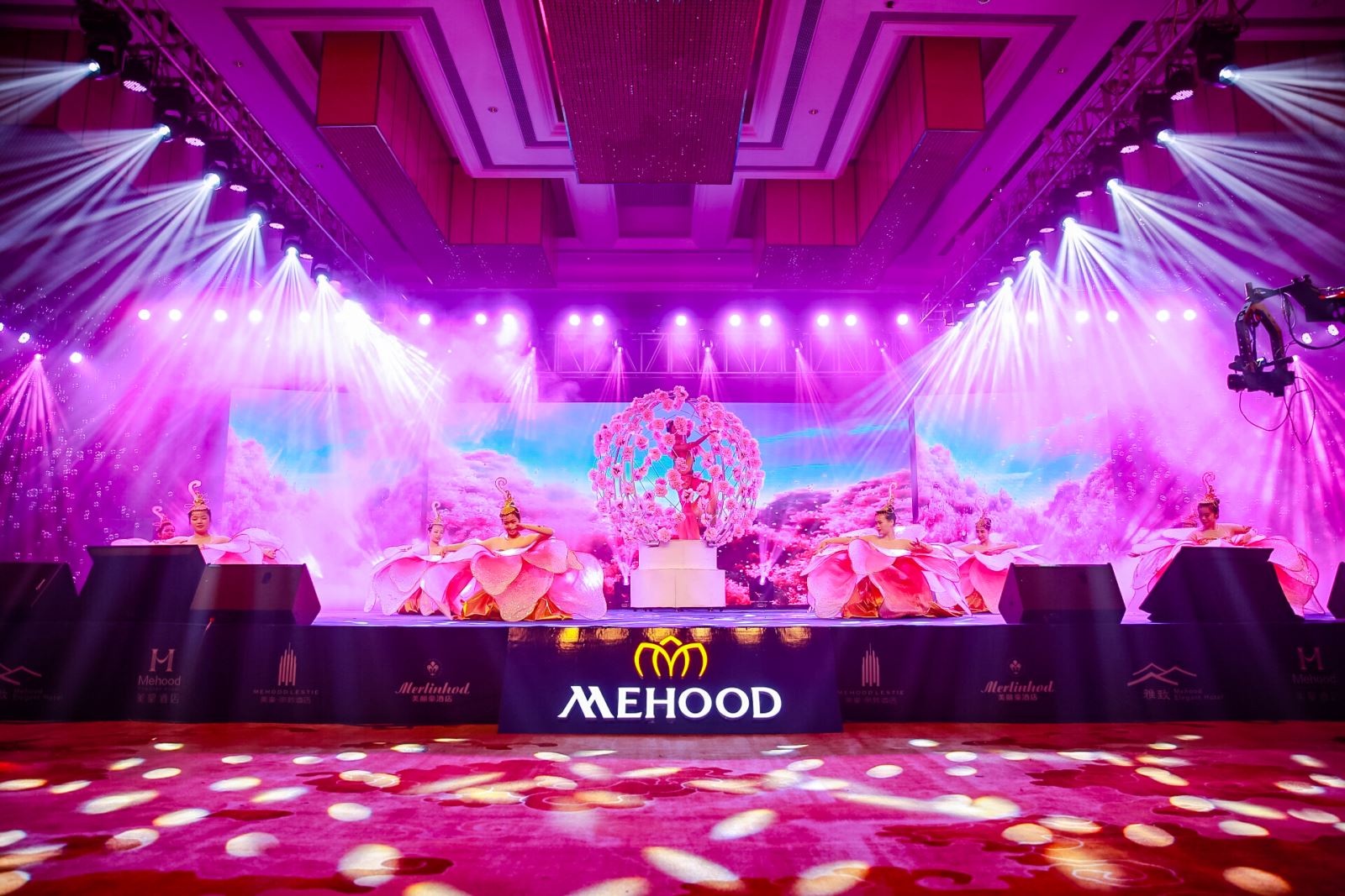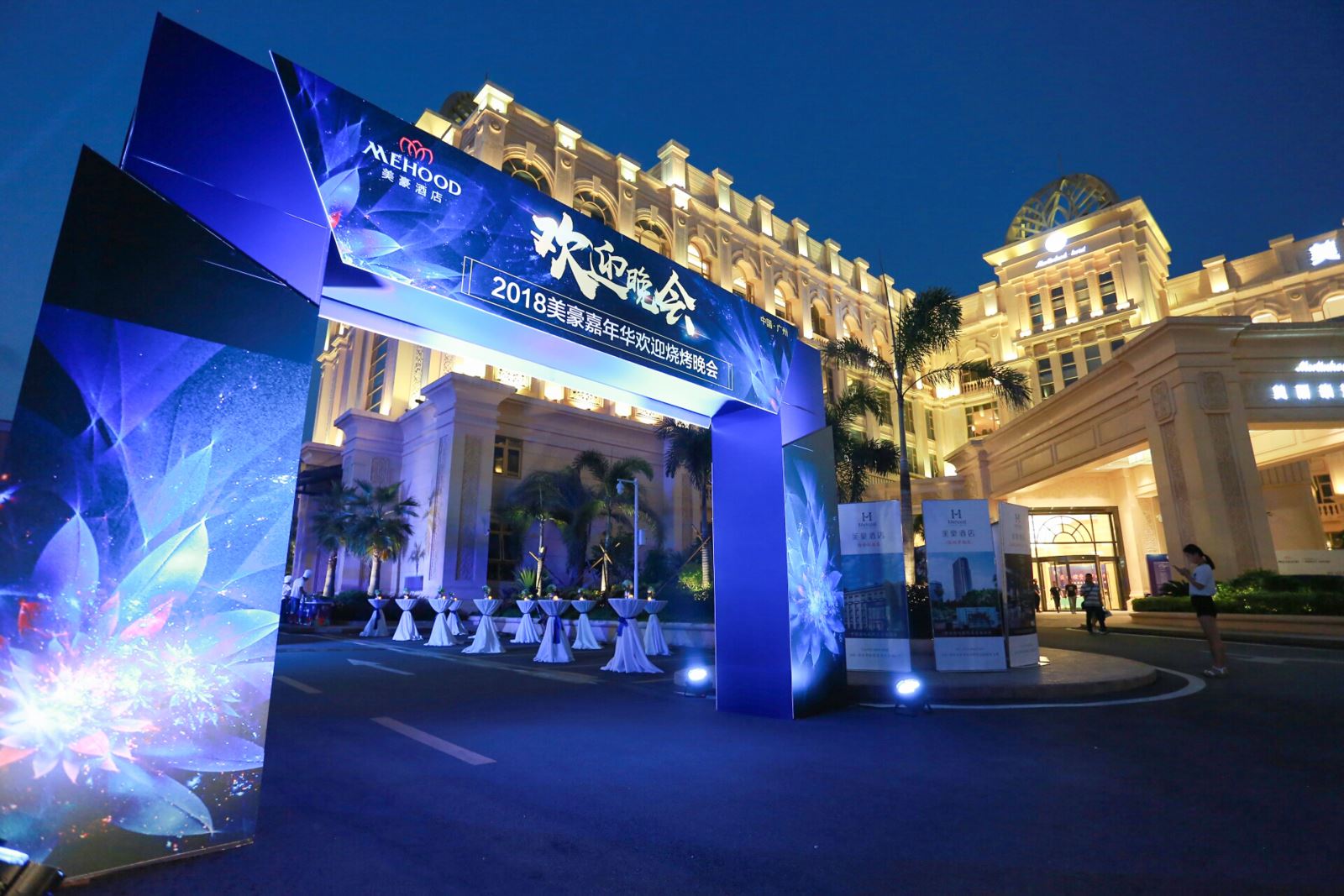 美豪嘉年華酒店外場(chǎng)布置,展示美豪集團(tuán)旗下200多家酒店分布,