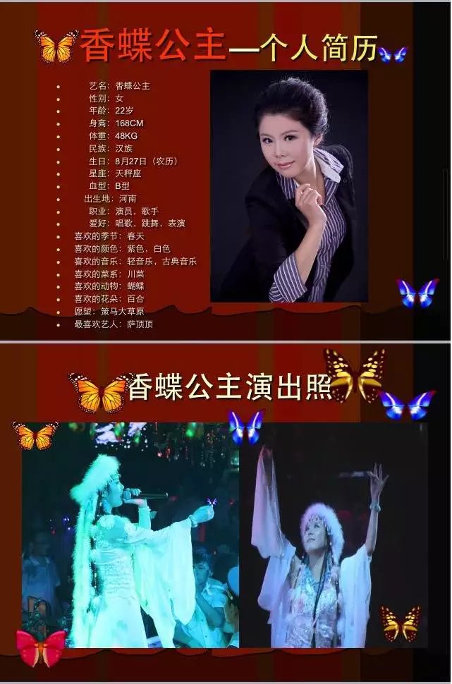 曾出訪美國(guó) 日本 新加坡 韓國(guó)演繹人與蝴蝶的翩翩浪漫 《央視CCTV 》《湖南衛(wèi)視》《遼寧衛(wèi)視》《河南衛(wèi)視 》《內(nèi)蒙古衛(wèi)視》《福建東南臺(tái)》《安徽衛(wèi)視》 《廣東衛(wèi)視》《浙江衛(wèi)視》《山東衛(wèi)視》《河南娛樂頻道》《齊魯電視臺(tái)》《信陽(yáng)電視臺(tái)》《北京電視臺(tái)》《中國(guó)教育電視臺(tái)》《深圳衛(wèi)視》《中央六套》《鄭州電視臺(tái)》《四川電視臺(tái)》《貴州衛(wèi)視》《汕頭日?qǐng)?bào)》《齊魯晚報(bào)》《信陽(yáng)商報(bào)》《大河報(bào)》《河南晚報(bào)》《深圳晶報(bào)》《中國(guó)文化報(bào)》《河南日?qǐng)?bào)》《大河網(wǎng)》《環(huán)球娛樂網(wǎng)》《新浪網(wǎng)》等眾多媒體相繼報(bào)道 她就是一個(gè)全身散發(fā)奇特異香和活蝴蝶一起舞蹈的傳奇女子"香蝶公主"