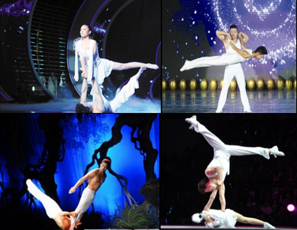 雜技節(jié)目《力量》與《肩上芭蕾》,編排巧妙,扣人心弦造型變化多端,軟硬功夫相輔相成,十分吸引眼球。給人一種藝術的美感,舞臺上的他們更是默契十足,再高難度的動作都能被他們完美地演繹。成功實現(xiàn)了浪漫抒情與驚險高難珠聯(lián)璧合中最為精彩的一面。