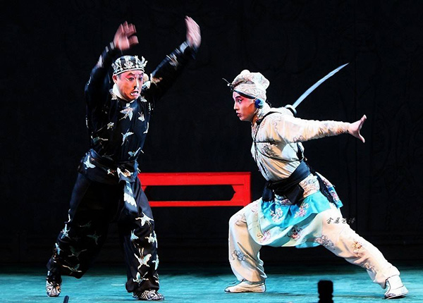 《三岔口》說的是宋將焦贊打死奸臣謝金吾,被發(fā)配沙門島,途經(jīng)三岔口,投宿于劉利華夫婦店中。大將任堂惠奉楊延昭之命暗中保護(hù)焦贊,不料在店中與劉發(fā)生誤會(huì),雙方在黑暗中打斗起來,幸虧焦贊及時(shí)趕來說明真相,解除了誤會(huì)。